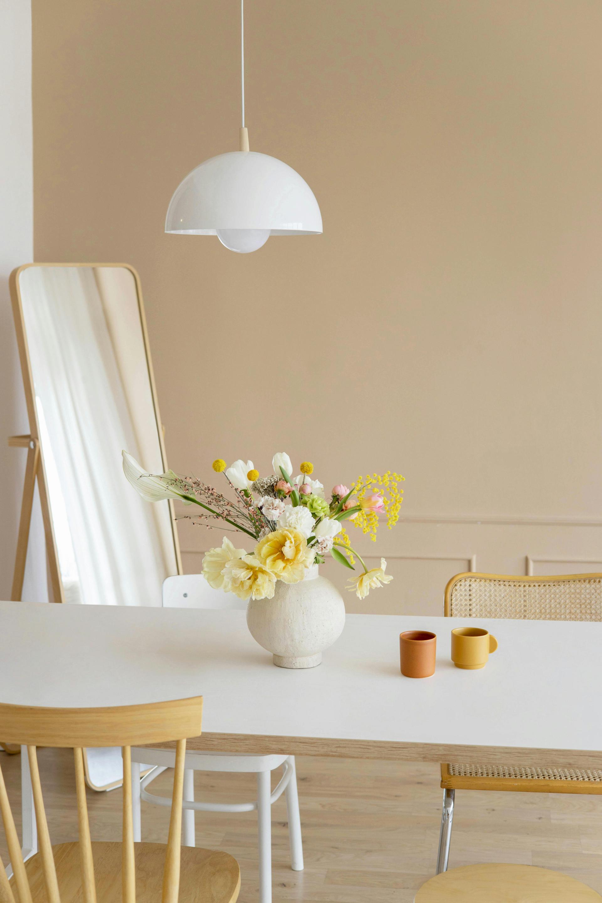 Crafted from warm wood material, this White Warm Wood 6-Person Dining Table offers a modern yet cozy atmosphere. Featuring a smooth white finish, this table perfectly complements any interior decor and is ideal for family gatherings or dinners with friends due to its spacious size. Its sturdy structure and elegant design ensure long-term use.